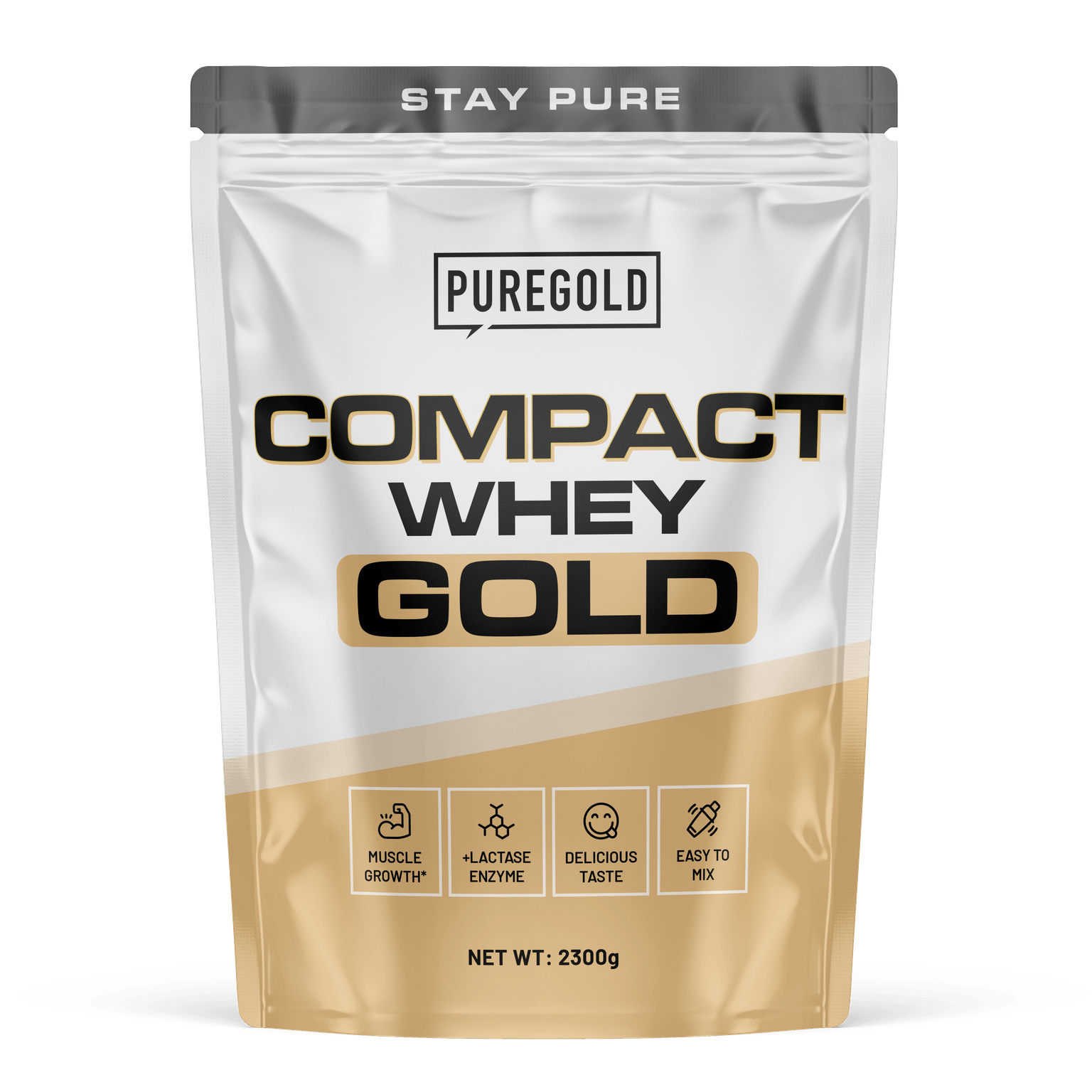 Compact Whey GoldProteine aromatizzate in polverePure Gold Compact Whey Gold è una bevanda in polvere aromatizzata a base di concentrato di proteine del siero di latte con l'aggiunta di enzimi digestivi ed edulcoranti.