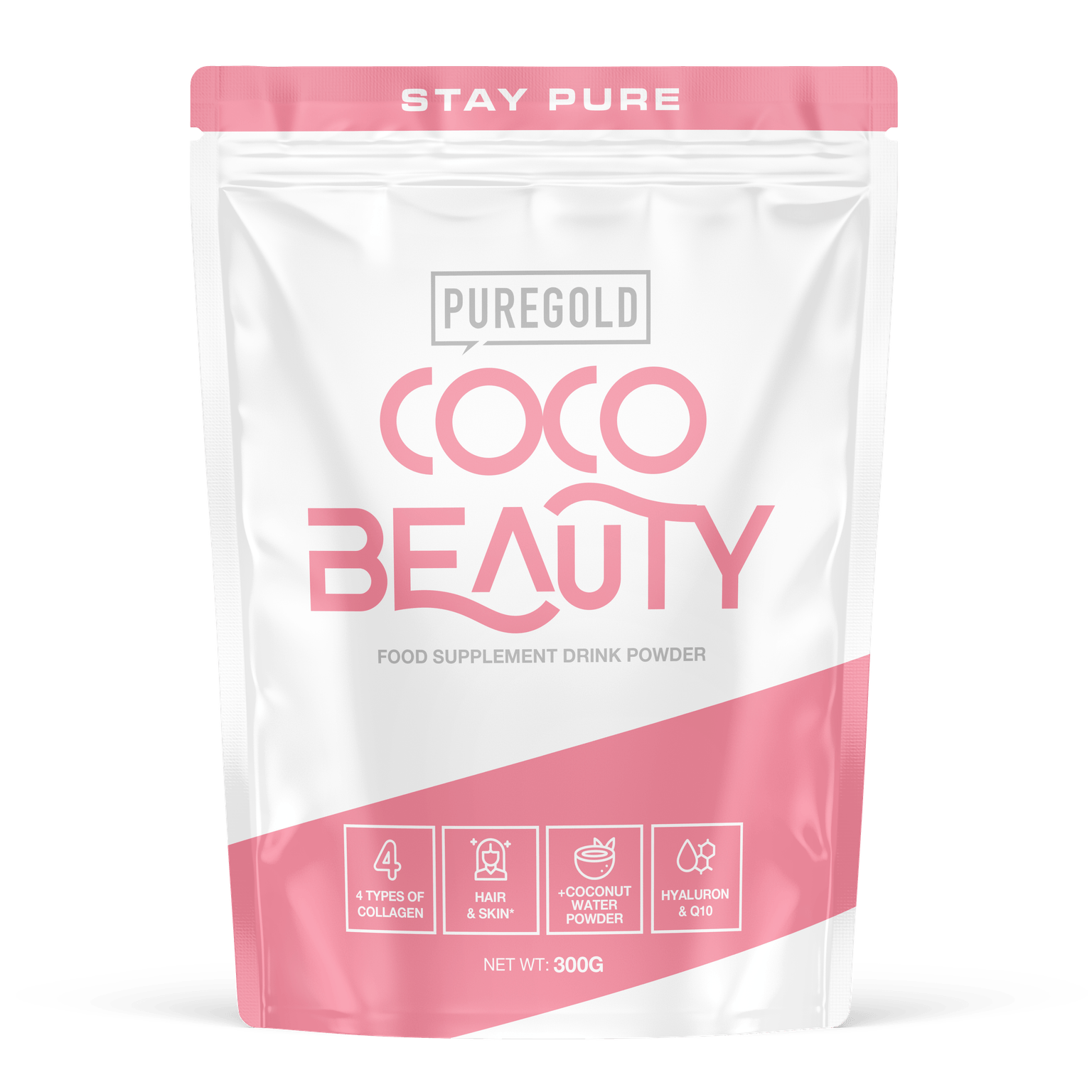 Pure Gold CocoBeauty è una polvere solubile aromatizzata e rinfrescante a base di collagene bovino e marino, sviluppata per chi desidera un adeguato apporto di collagene. La particolarità del prodotto è la presenza di polvere di acqua di cocco, acido ialuronico, coenzima Q10, zinco e vitamine A e C, che contribuiscono scientificamente al normale funzionamento di pelle, capelli, unghie e sistema immunitario. La sua formula in polvere si scioglie facilmente, rendendolo pratico e facile da integrare nella routine quotidiana.