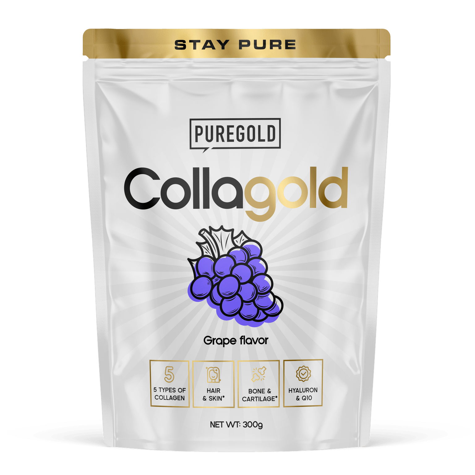 Pure Gold CollaGold è una formula complessa di collagene che contiene 5 diverse fonti di collagene. Le fonti premium di collagene sono arricchite con acido ialuronico, Q10, vitamine e minerali (vitamina C, vitamina A, zinco, selenio). Questa combinazione non solo supporta la salute di pelle, capelli e unghie, ma contribuisce anche al normale funzionamento delle articolazioni, delle cartilagini e delle ossa. Grazie al suo gusto rinfrescante si integra facilmente nella routine quotidiana.