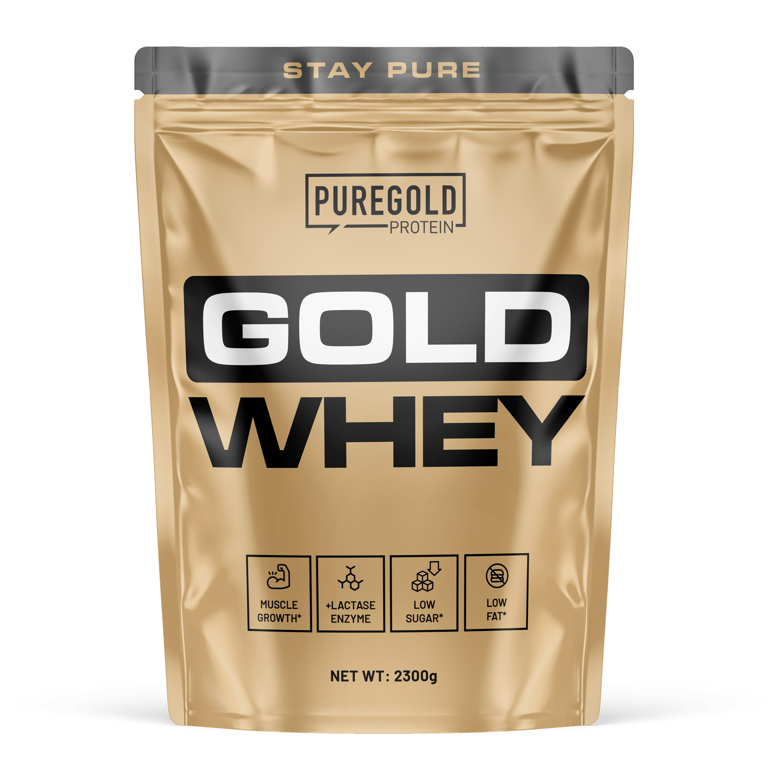 Gold WheyProteine aromatizzate in polverePure Gold Whey Gold è una bevanda in polvere aromatizzata a base di concentrato di proteine del siero di latte con l'aggiunta di enzimi digestivi ed edulcoranti.